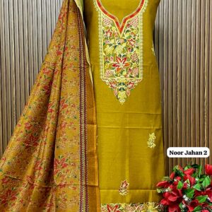 Allover pure viscose pashmia suit with kashmiri embroidery on neck (NOOR JAHAN)