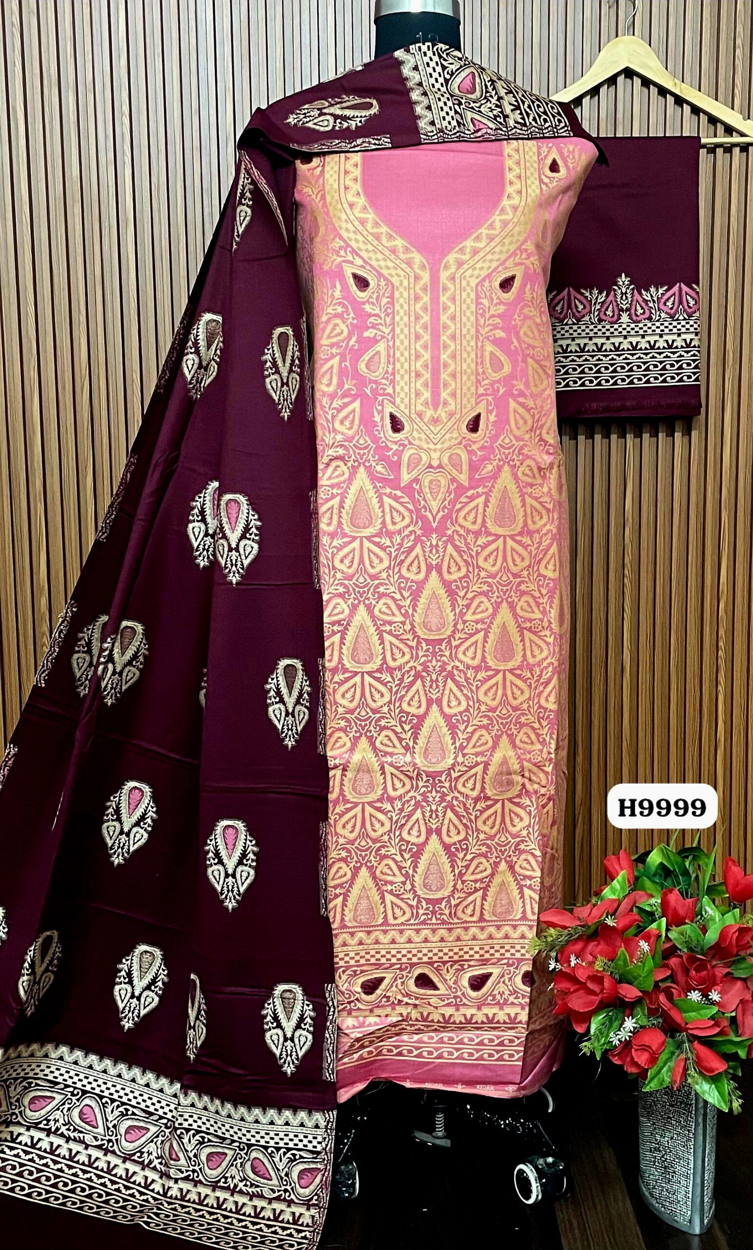 *š„Premium Weaving Pashmina Suit With Designer Contrast Bottom & Stoleš„*