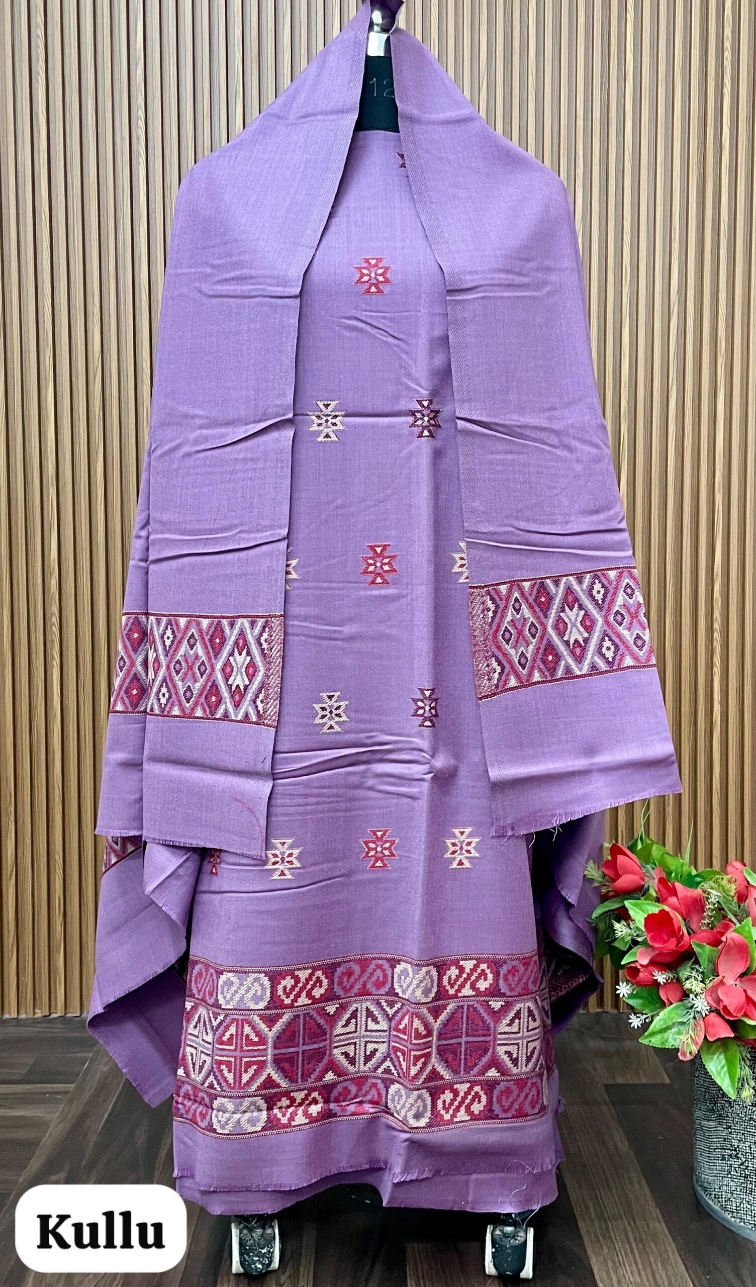 *ALLOVER PURE VISCOSE CASHMILON PREMIUM KULLU WEAVING BORDER BOOTI SUIT* (APPROX 4.75 MTS)