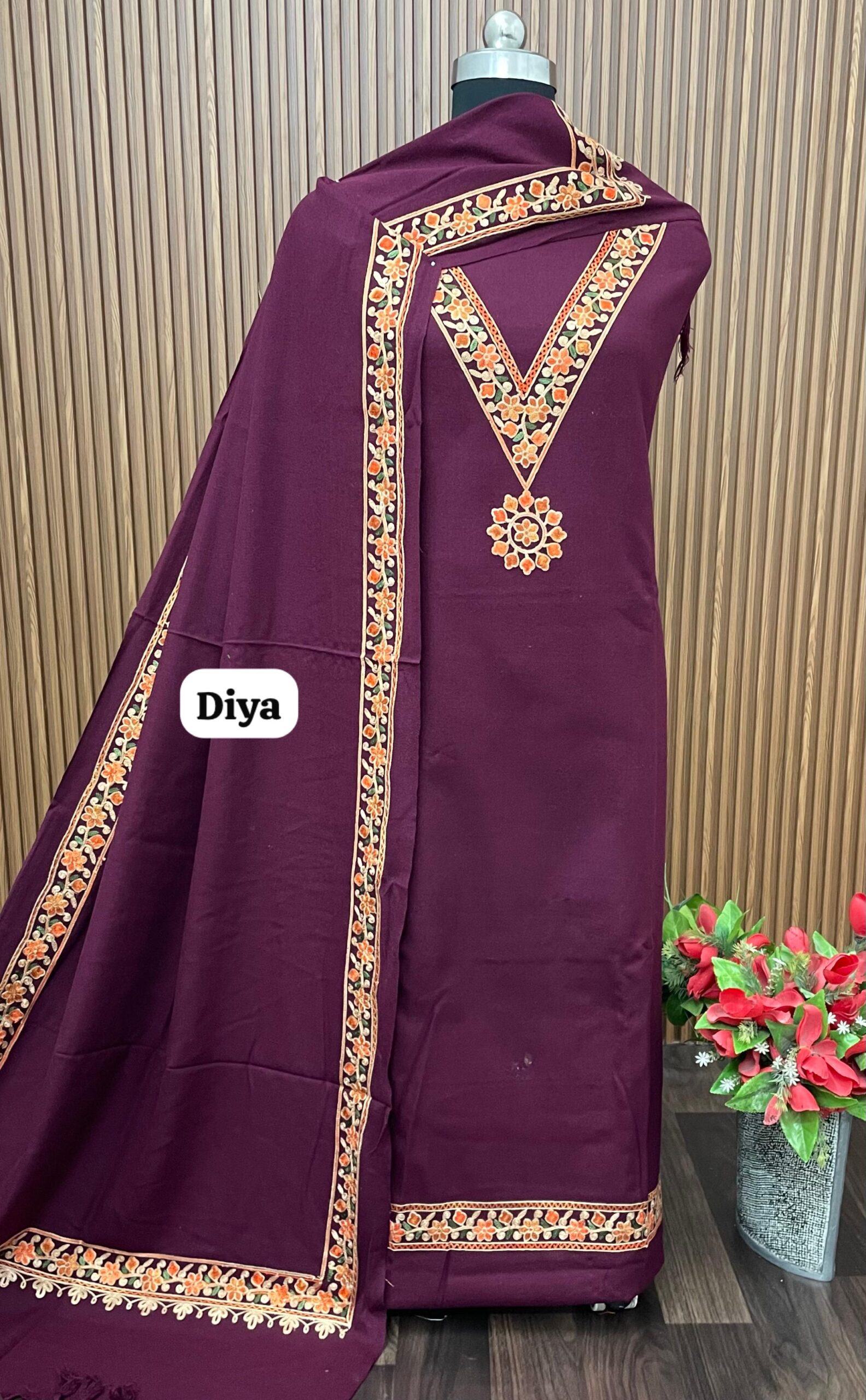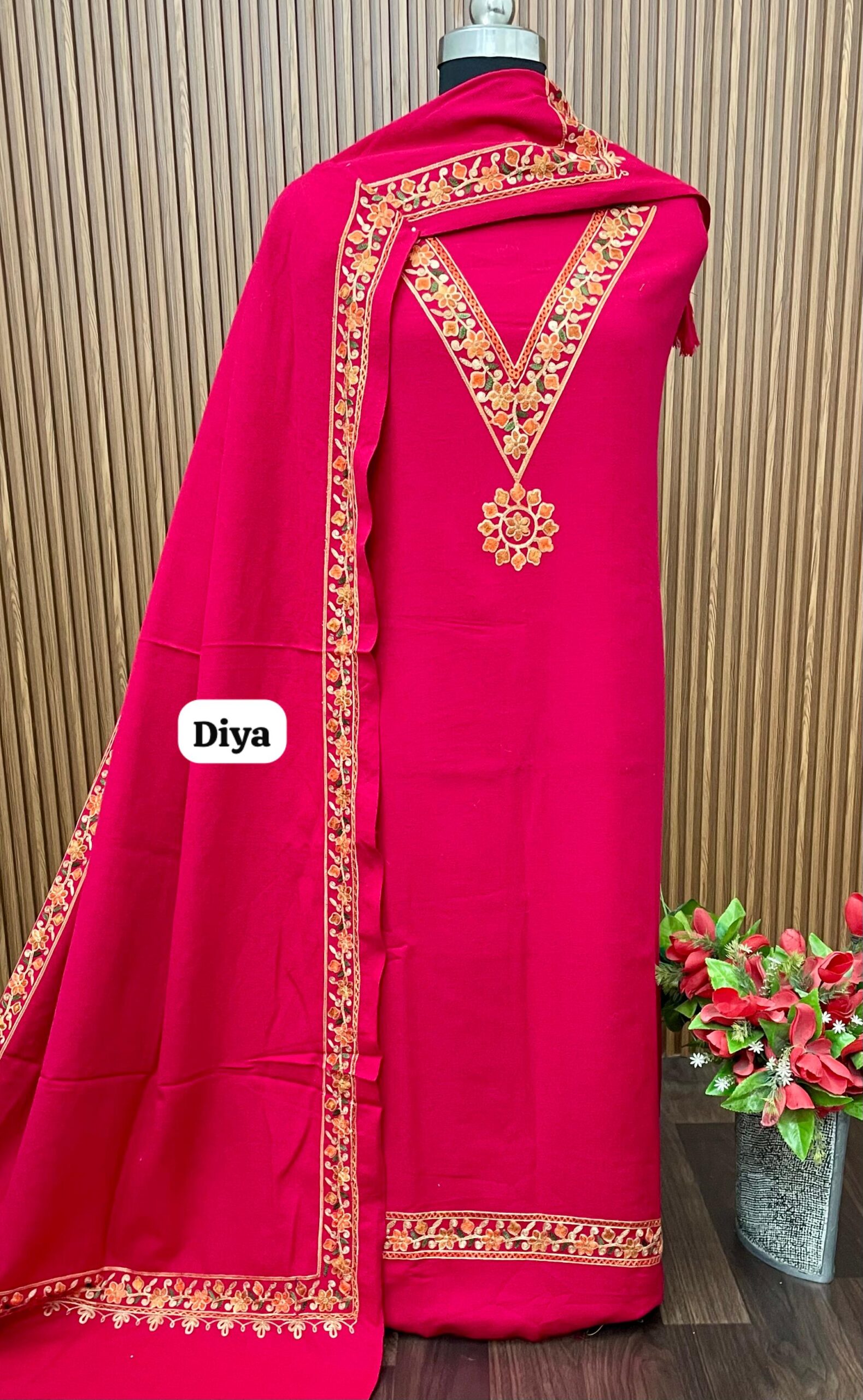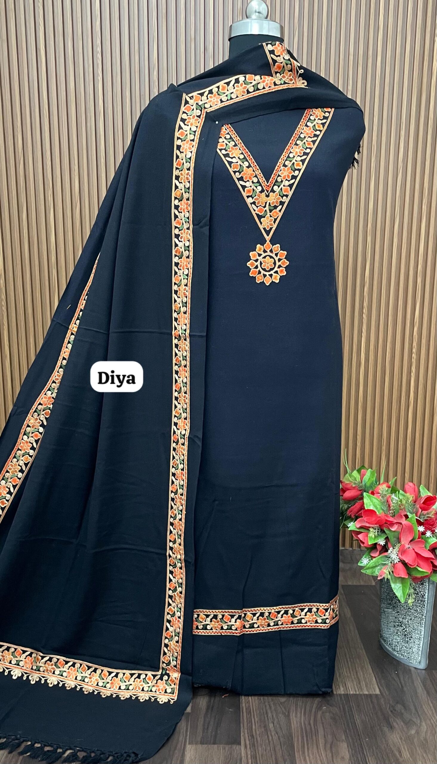 *Allover pure viscose pashmia suit with kashmiri embroidery*(approx 5 mts)
