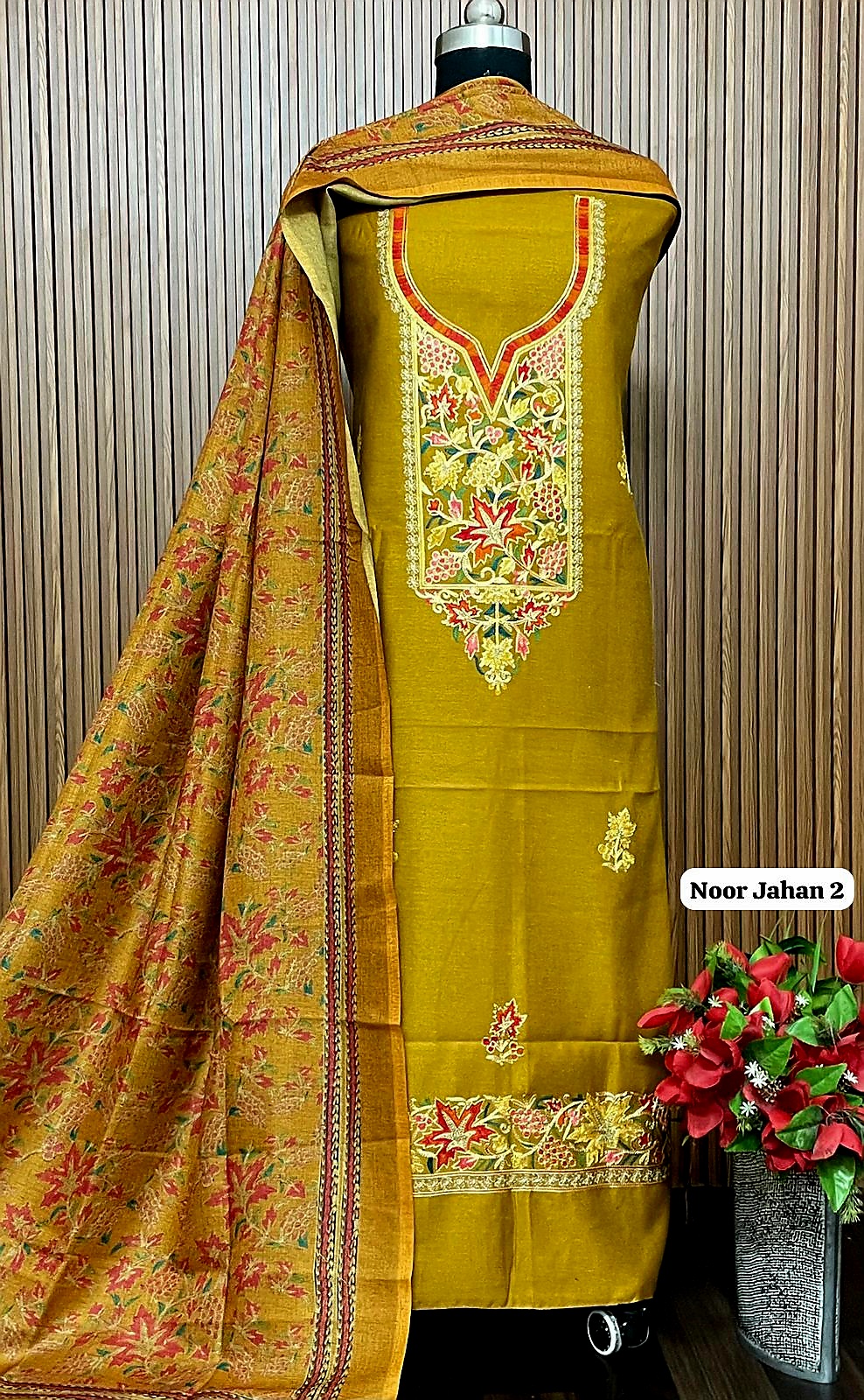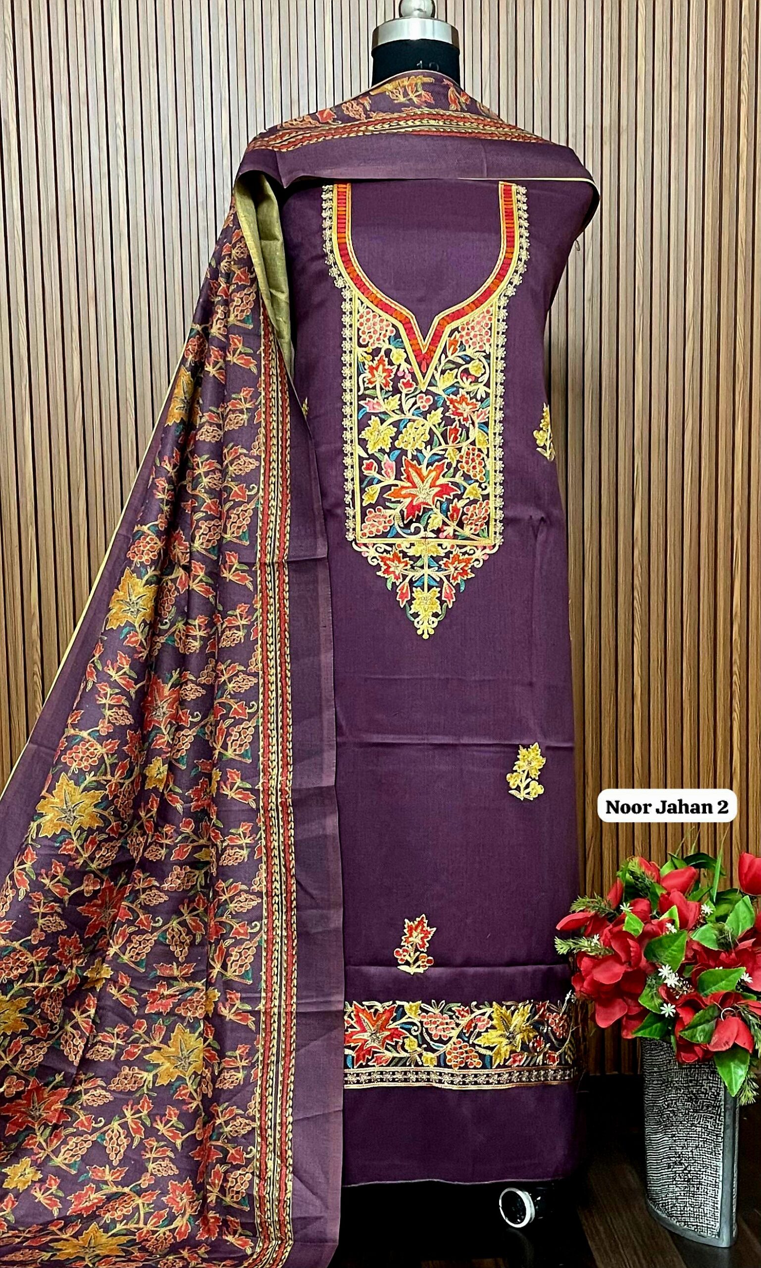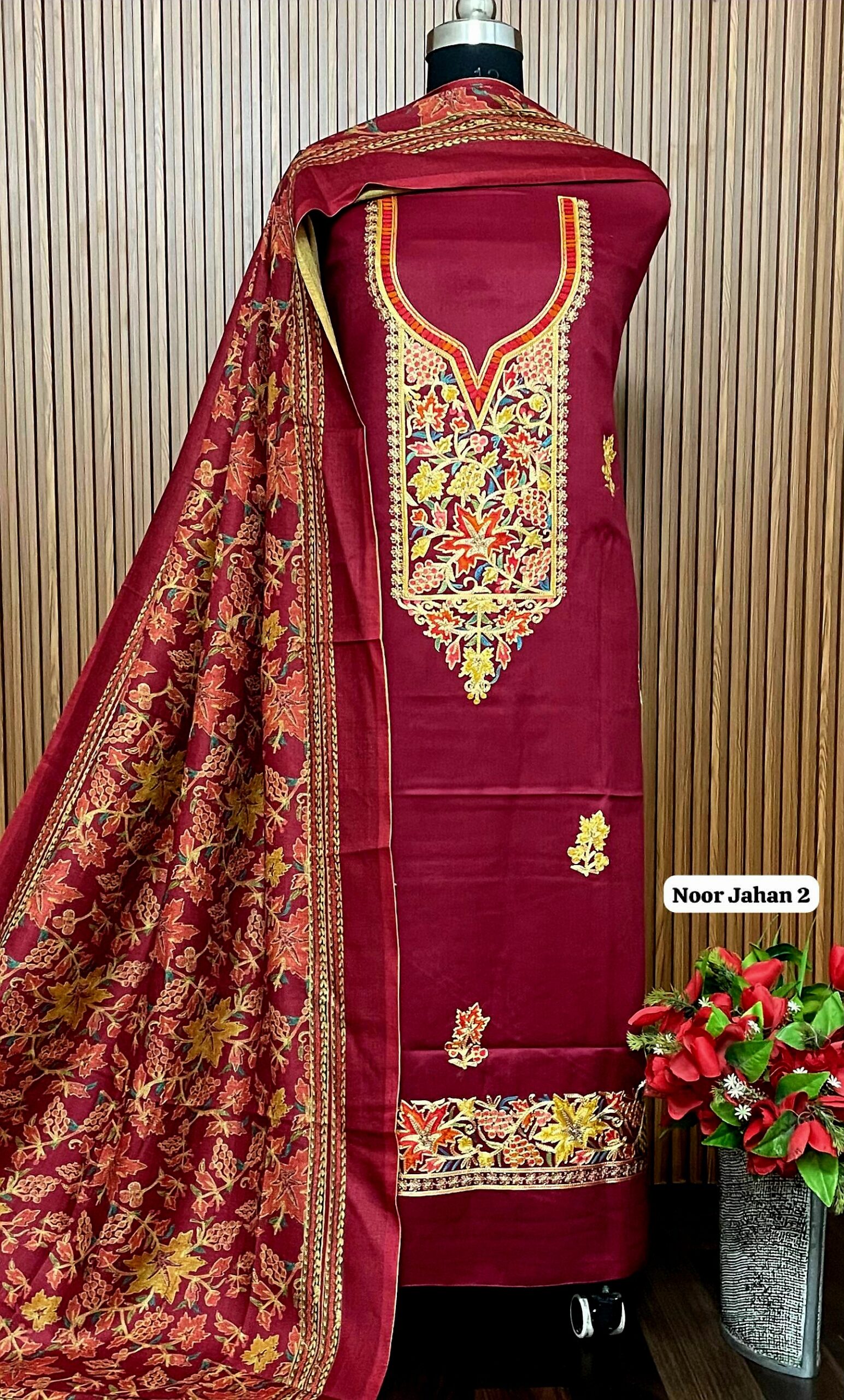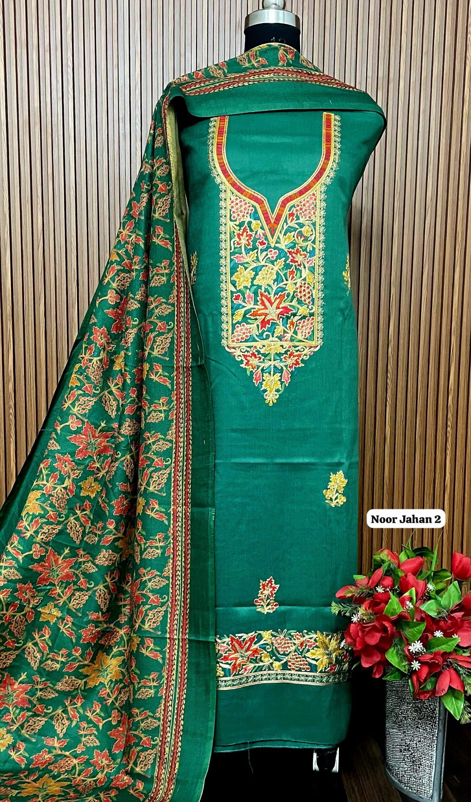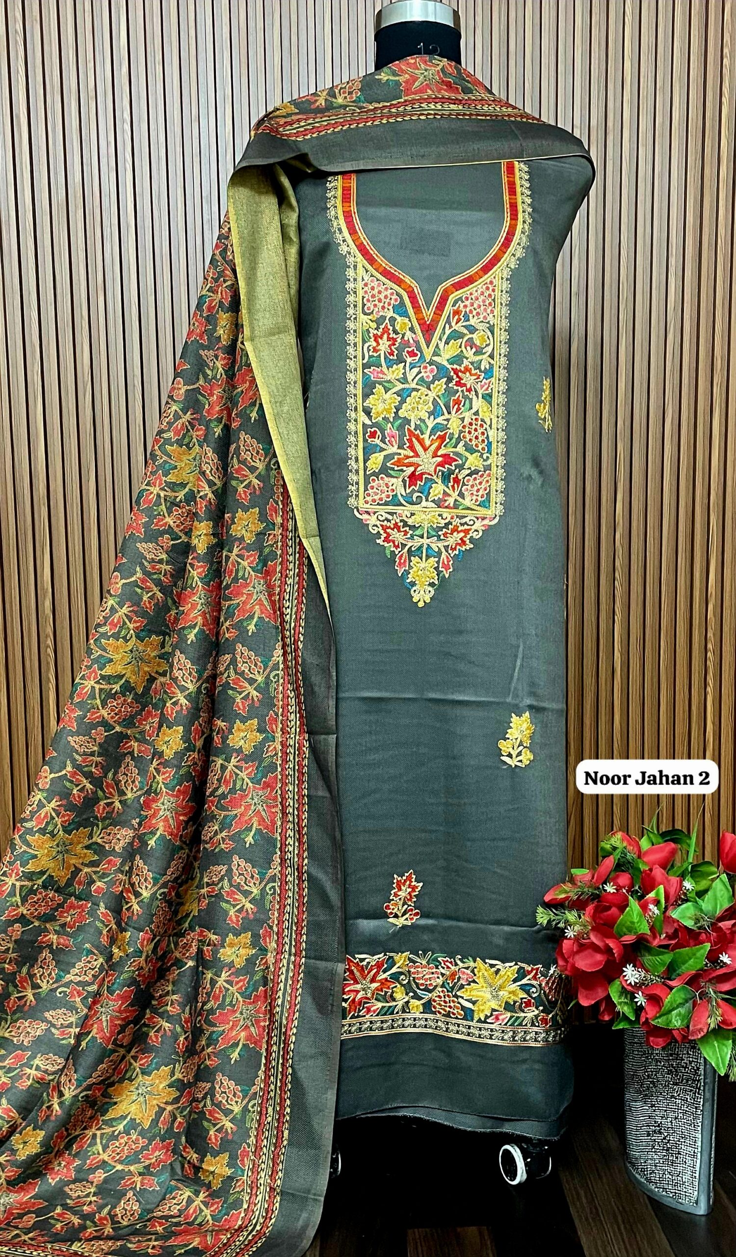 *Allover pure viscose pashmia suit with kashmiri embroidery on neck*(approx 5 mts)