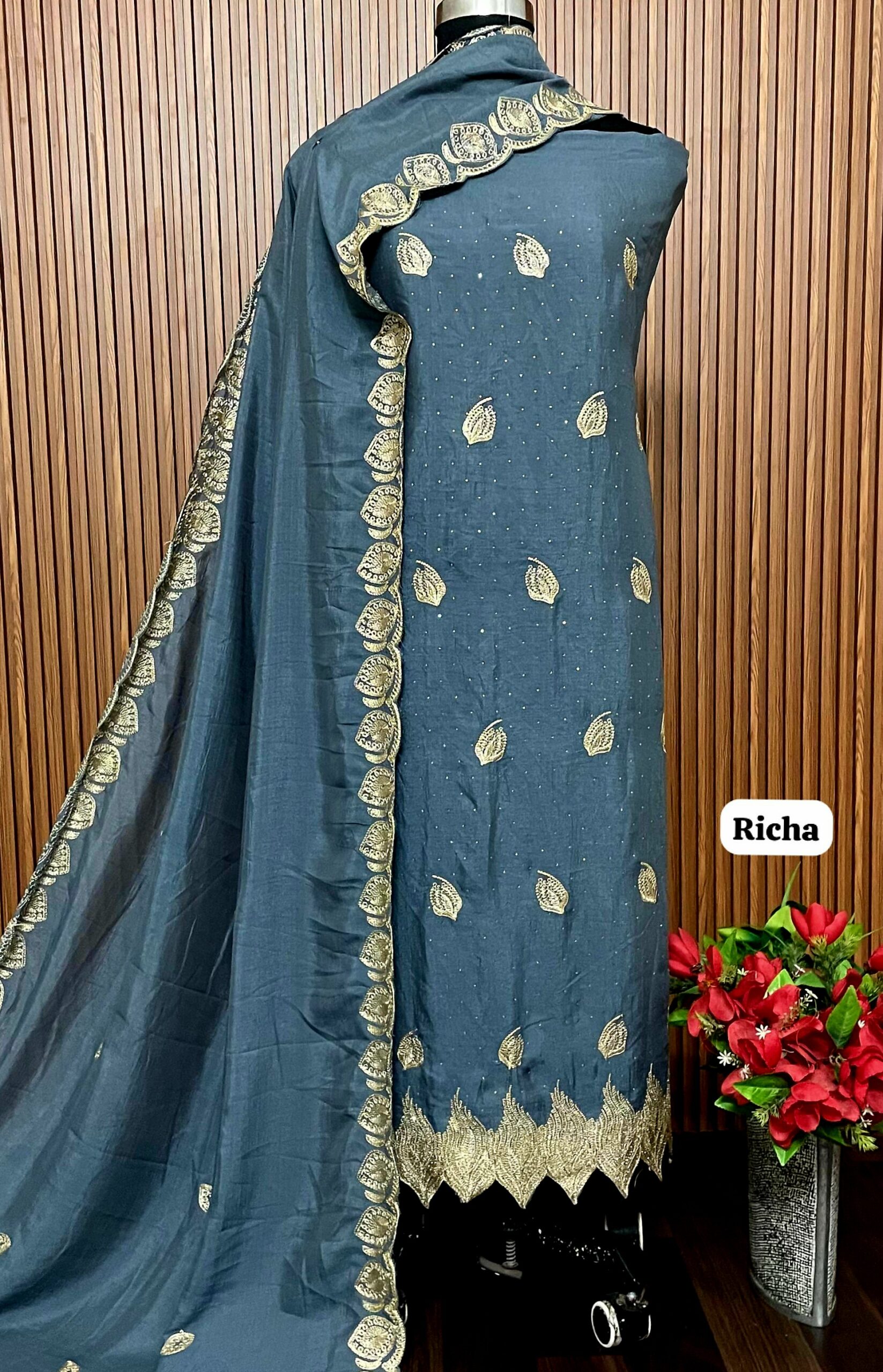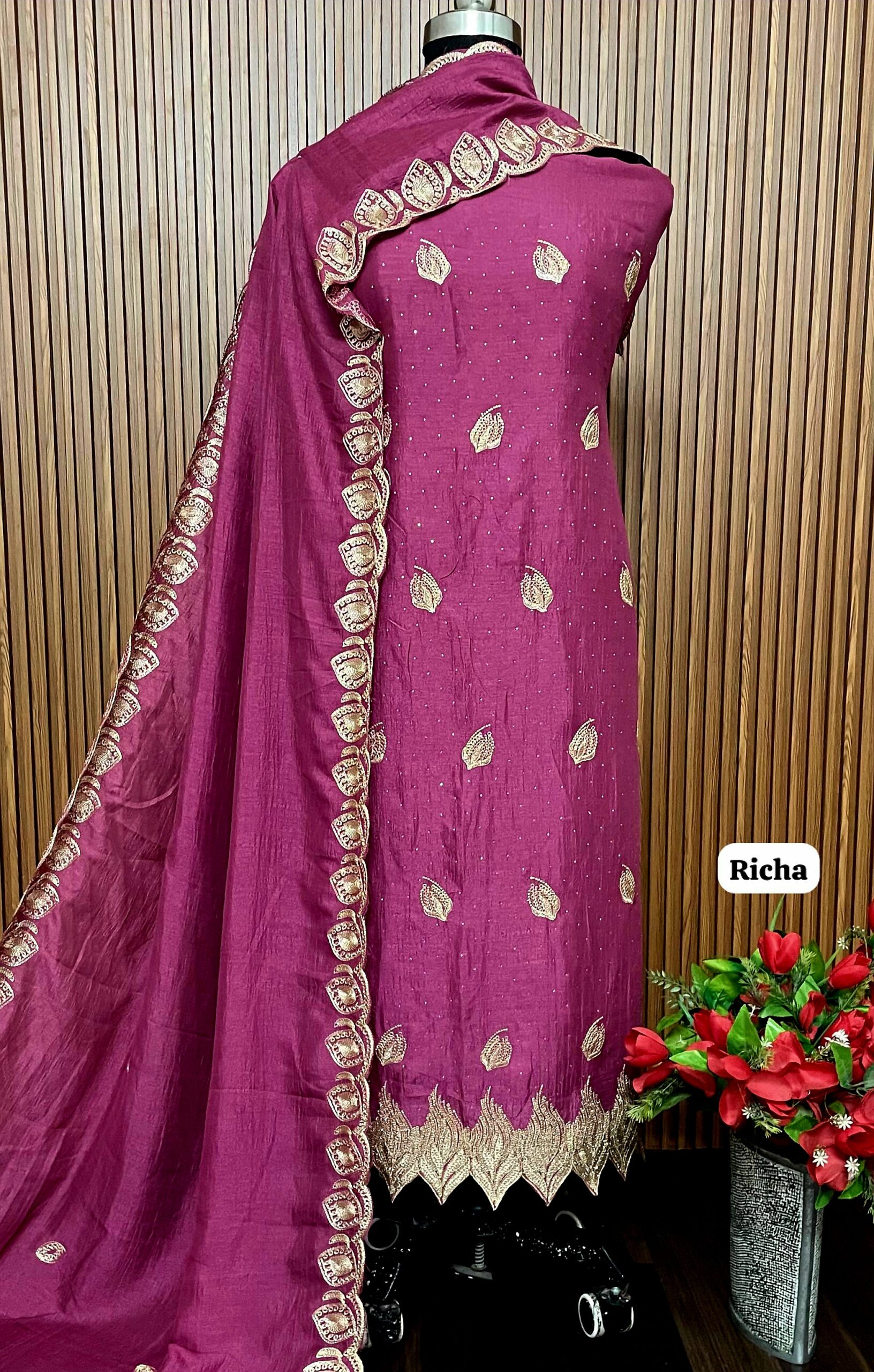 *Allover vichitra silk suit (approx 5 mtrs)*