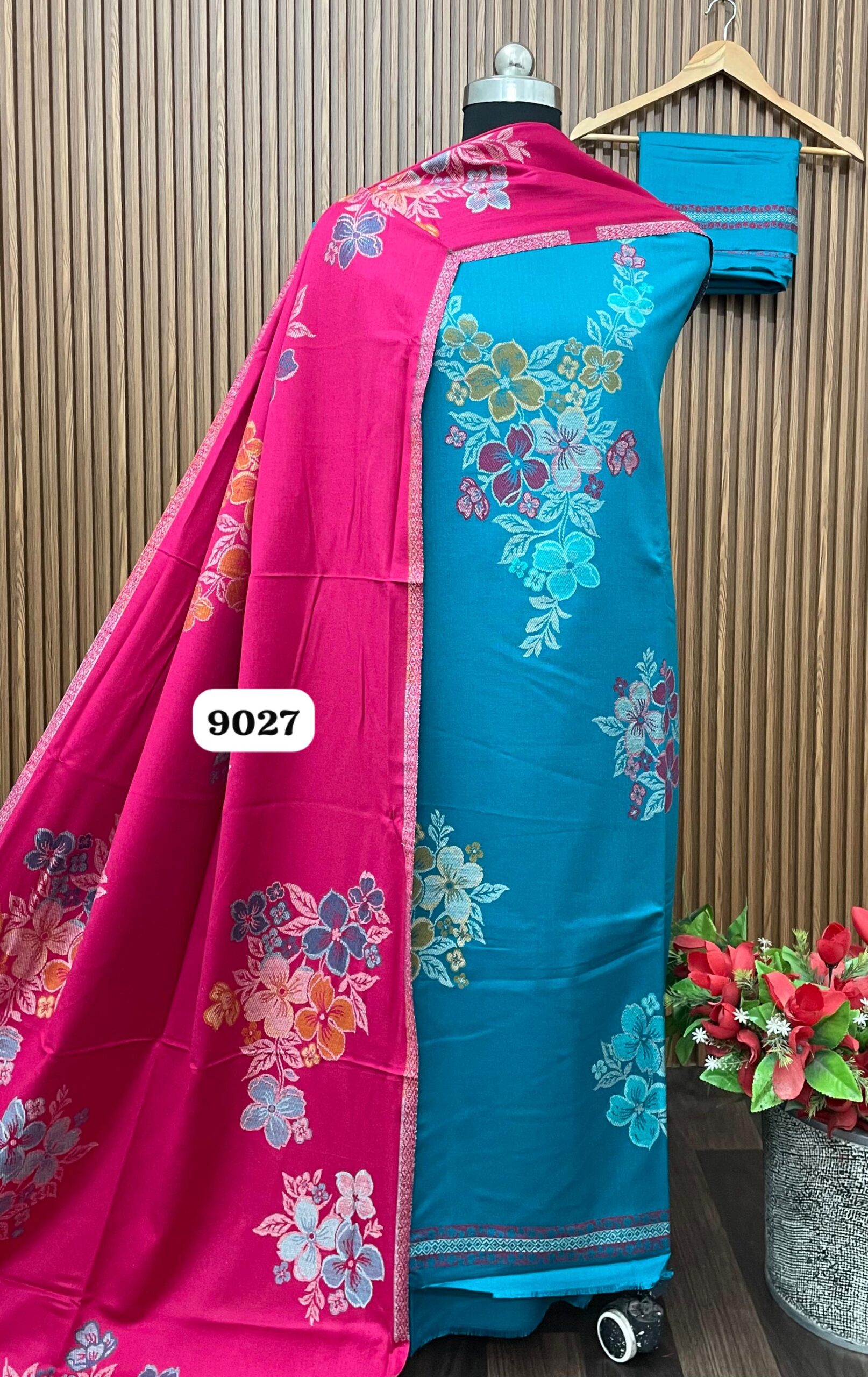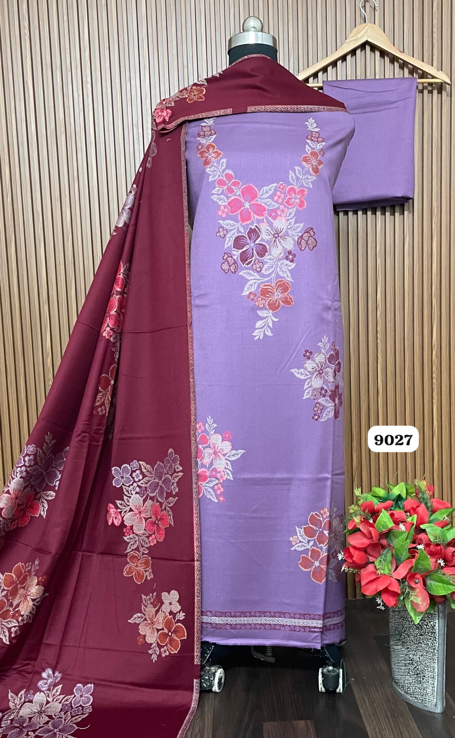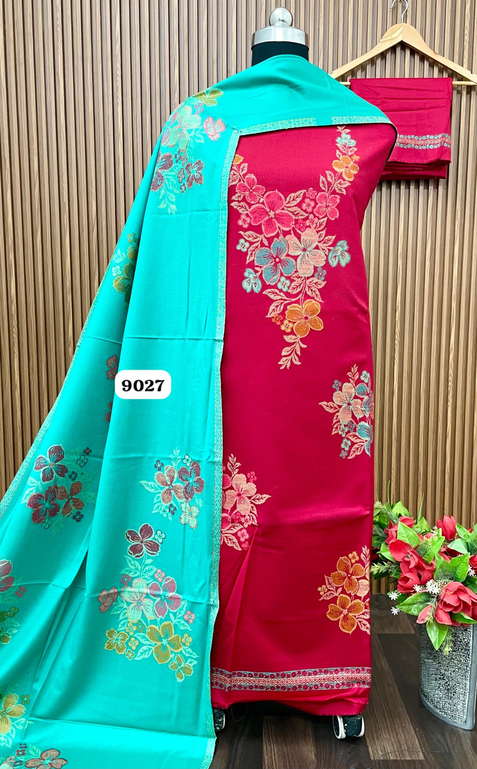 š„Premium THREAD EMBROIDERY Weaving Pashmina Suit With Designer Contrast Stoleš„