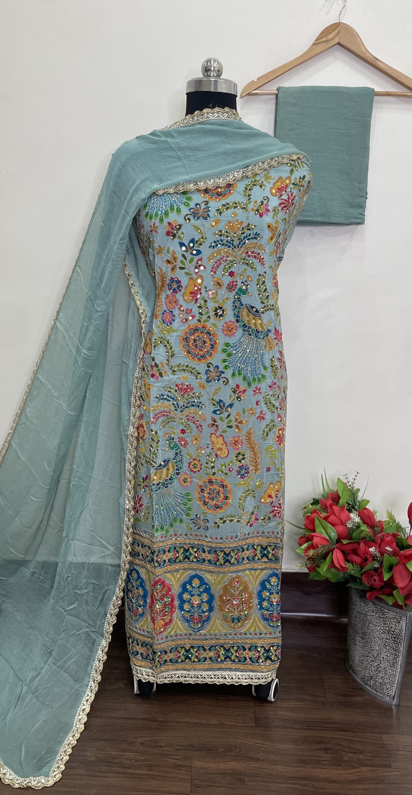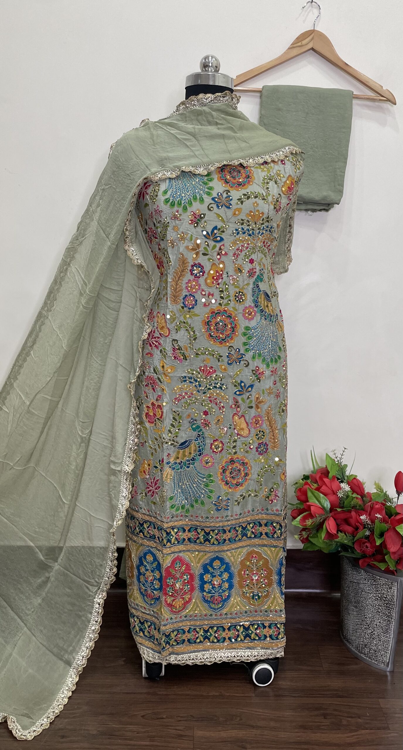 PURE CRAPE DESIGNER SUIT WITH PLAIN BACK (ADITI)